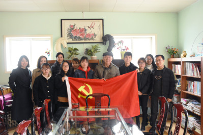 在公寓活动室,老共产党员董爷爷给学生党员们上了一节党课,学生党员们听得十分认真。董爷爷跟学生党员们强调要树立劳动观念、阶级观念、党的观念、群众观念、纪律观念五大观念,董爷爷还告诉学生党员们,觉得苦、累时,可以想想革命老前辈,想想红军两万五。