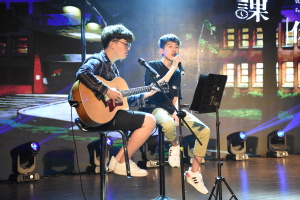 随着时间流逝,短片放到了军训阶段,同学们表演了吉他弹唱《等你下课》。该节目生动体现了同学们美好的大学生活,其表演者歌声动人,也让同学们联想到自己大学三年的美好回忆,同时也流露出一丝对南京医科大学的依依不舍之情。