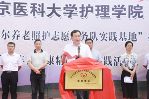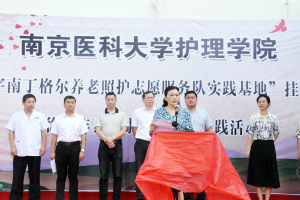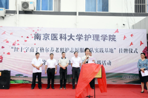 仪式由副县长孙寸贤主持。师寨镇党委书记王峒清在致辞中感谢MK体育(中国)充分发挥学科优势,精准对接乡镇需求,做到健康精准扶贫。随后,管园园副书记宣读《关于设立徐州市丰县师寨镇卫生院为mk体育在线官网“红十字南丁格尔养老照护志愿服务队实践基地”的通知》,并与师寨镇卫生院院长康峰签订合作协议。江苏省红十字会卫生救护部部长聂城在讲话中表示,护理学院一直积极与红十字会合作,共同探讨养老照护新模式,开展了多项志愿服务活动,取得了很好的效果。县委副书记、省委驻丰县帮扶工作队队长黄挺对MK体育(中国)发挥专业才干,真正做到精准扶助的实践活动表示肯定,希望接下来的合作能够更加深入,惠及村民。最后,与会领导为基地揭牌。