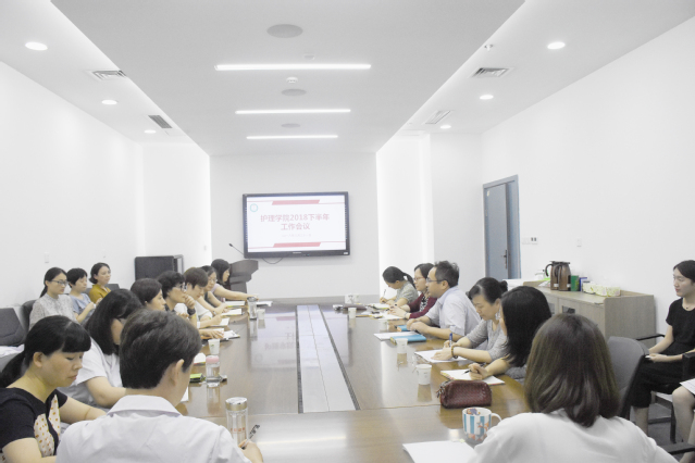 2018年8月31日下午,我院在学海楼C504会议室召开了新学期第一次教职工大会暨2018下半年工作会议,全体教职工参会,我院兼职副院长、一附院护理部主任顾则娟受邀参会,党总支书记林炜主持会议。