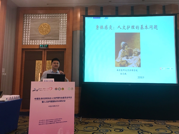 任元鹏老师应邀作题为“身体感受:人文护理的基本问题”的大会发言,从身体哲学角度阐述身体感受是人生命的重要标志,提出身体感受是人文护理的基本问题。关注身体感受、倾听身体的呼声以及呵护身体是人文护理的必然要求;同时,护理人员自身的身体感受也是护理工作的重要制约因素,并以此总结出人文护理的基本内涵。任老师的发言得到了与会专家与老师的关注与好评,并获得了大会优秀论文。