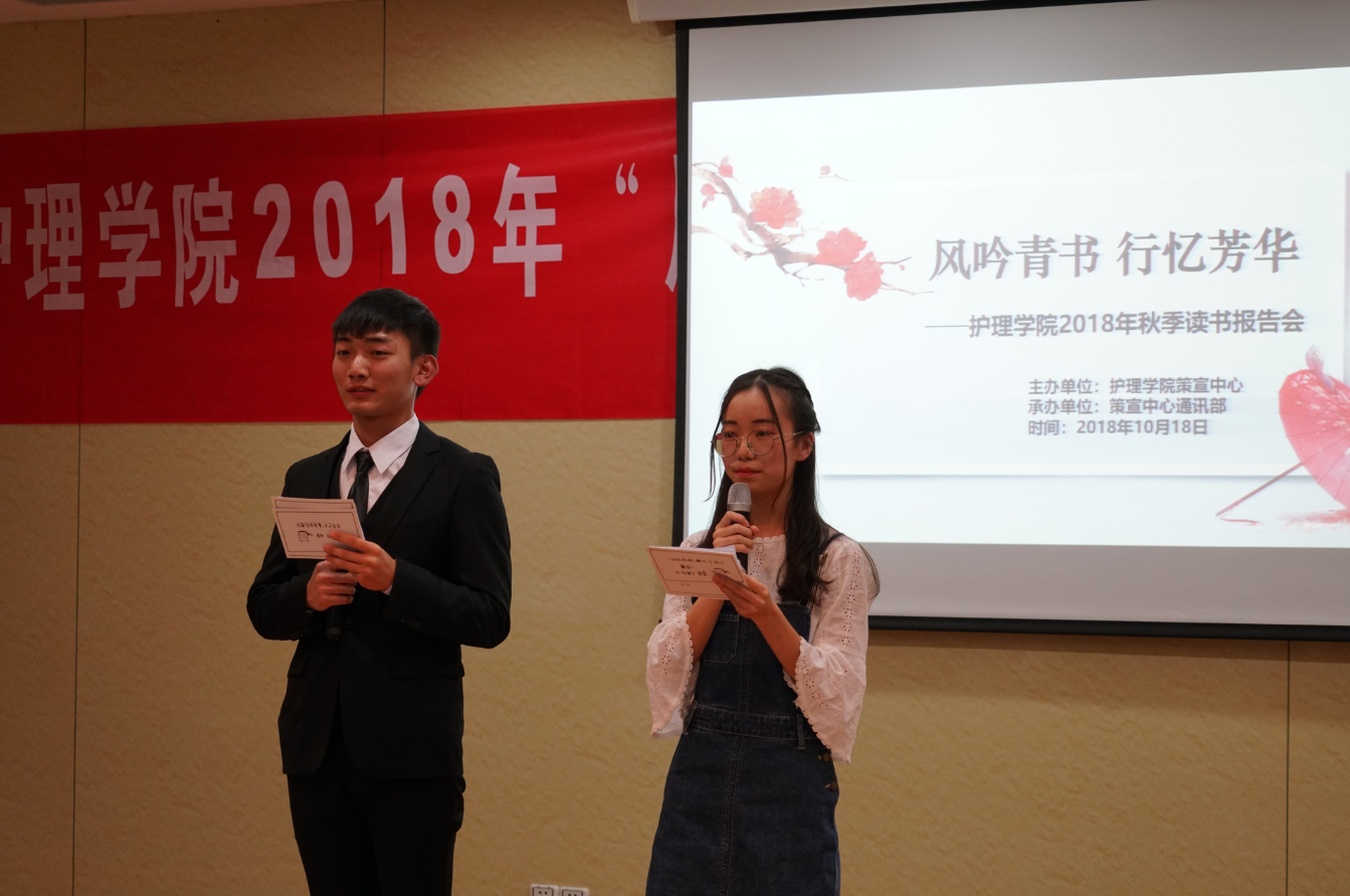 “携书卷品读,忆经典芳华”。10月18日晚6点30,MK体育(中国)2018“风吟青书,行忆芳华”秋季读书报告会在图书馆5楼报告厅拉开帷幕。校党委办公室张爱林老师、MK体育(中国)临床护理学系汪璐老师、2017、2018级兼职班主任刘名芳老师、程青曼老师、胡茜老师、陈芹老师、赵庆云老师、孙杰老师、徐奕舒老师及MK体育(中国)学工办全体辅导员出席了本次读书报告会。