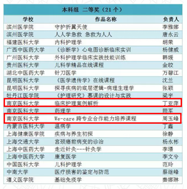 10月27日,由人民卫生出版社与中华医学会教育技术分会联合举办的首届人卫慕课在线开放课程建设比赛结果揭晓,我院报送的《临床护理案例解析》、《We-care跨专业合作能力培养课程》获课程设计比赛本科组二等奖。