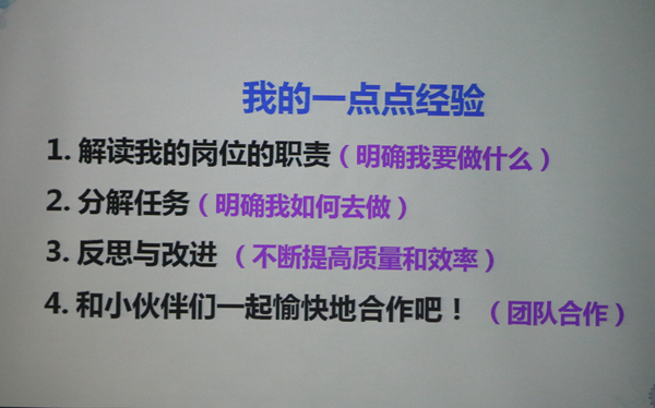 对于专科护士的工作安排,赵老师和大家分享了她的经验和见解:明确自己的工作职责、学会分解任务、通过对工作的方式不断改进来提高质量和效率,以及最重要的是团队合作。