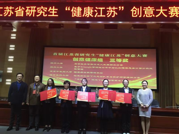 12月1日,首届江苏省研究生“健康江苏”创意大赛决赛,在南京中医药大学仙林校区举行。我院基础与社区护理学学系研究生余洁、邢颖分别荣获"智慧健康"、"创意健康"组别三等奖。