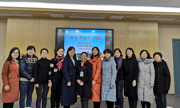 为加快新教师成长步伐、推动师资队伍建设、提高教育教学质量,2019年2月22日,临床护理学系在学海楼组织本学期第一轮新教师试讲活动,参加本轮试讲的是来自南京医科大学第一附属医院,附属脑科医院,附属儿童医院及附属老年医院的六位新教师。试讲活动由临床护理学系陈明霞主任和董玲副主任主持,教学副院长丁亚萍副教授及临床护理学系各课程负责老师参加了本次活动。