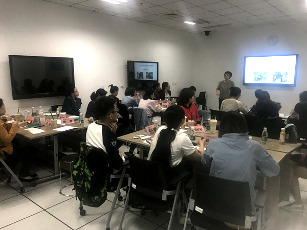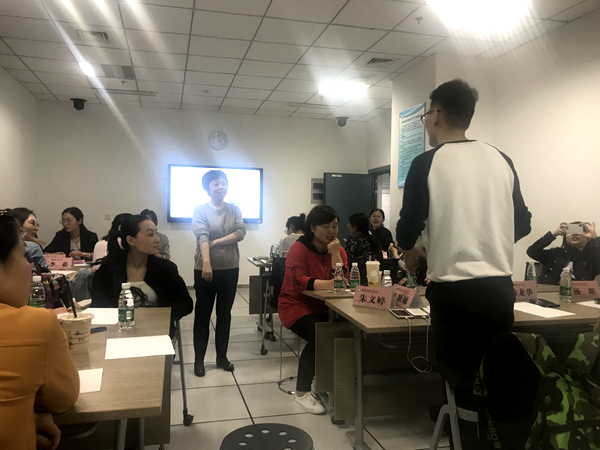 首先,张俊老师带来教案编写的分享。参会老师分为4个小组进行讨论,在互相简单的自我介绍之后,确定并汇报每组的情境主题。接着张俊老师从编写教案的目的、教案的写法和格式引入情景模拟教学,让各组从刚刚选定的临床情境中设定一个学习目标,并按照对象(A)、行为(B)、状况(C)、程度(D)四部分深入讨论。从学习目标出发,张俊老师提出教案核心架构CLT,即关键事件、学习目标和标的反应。每组以此为框架进行教案编写及分享。