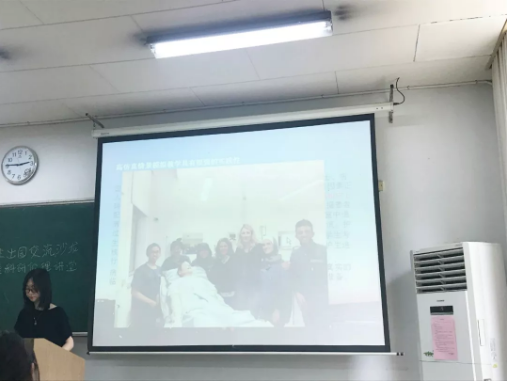 孙昌仙和徐欣怡师姐此次访学的是美国克雷顿大学。两位师姐介绍了她们在Nebraska医学中心参观的手术准备实践课程,并说这是她们在克雷顿大学见识到的最奇妙的课程。另一个比较有特色的是在美国十分常见的免费诊所。除此之外,她们还参观了NFC(长期照护机构),这在美国发展的相对比较成熟,但在国内目前只有台湾和香港地区逐渐开始发展,大陆地区仍有较大的发展空间。