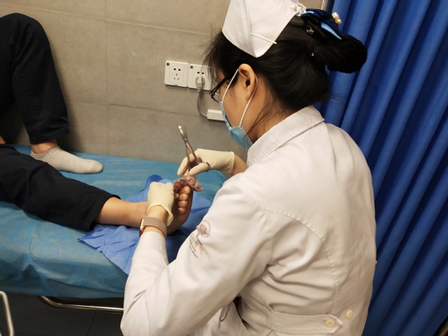 在理论学习过程中,门诊部陆陆续续来了病人,汪老师让我们见到了各种不同的对待方法。她一边和病人聊天,一遍处理伤口,她说,如果我们适当地用谈话来分散病人的注意力,有利于让他们心理负担减轻,这是处理时经常用的方法。同时,她再次强调多学知识的重要性,这将有利于更好地了解各种愈合敷料,加速伤口愈合,减轻患者在伤口造口治疗过程中的疼痛和不适,更好地为患者提供相关方面专业化优质服务。