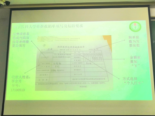 首先,李含月同学对MK体育(中国)的报销细则问题进行详细地介绍和讲解,她指出,MK体育(中国)现有报销流程存在缺乏完整的报销体系及换届后新任机构干部缺乏对报销流程缺乏了解两大问题。其次,她讲解了具体的报销流程,强调了报销流程注意事项,包括发票要求、南京医科大学单据报销单填写、发票黏贴要求及设备科不入库登记盖章要求。最后,李含月同学对各位提出的疑问进行解答并给予指导。
