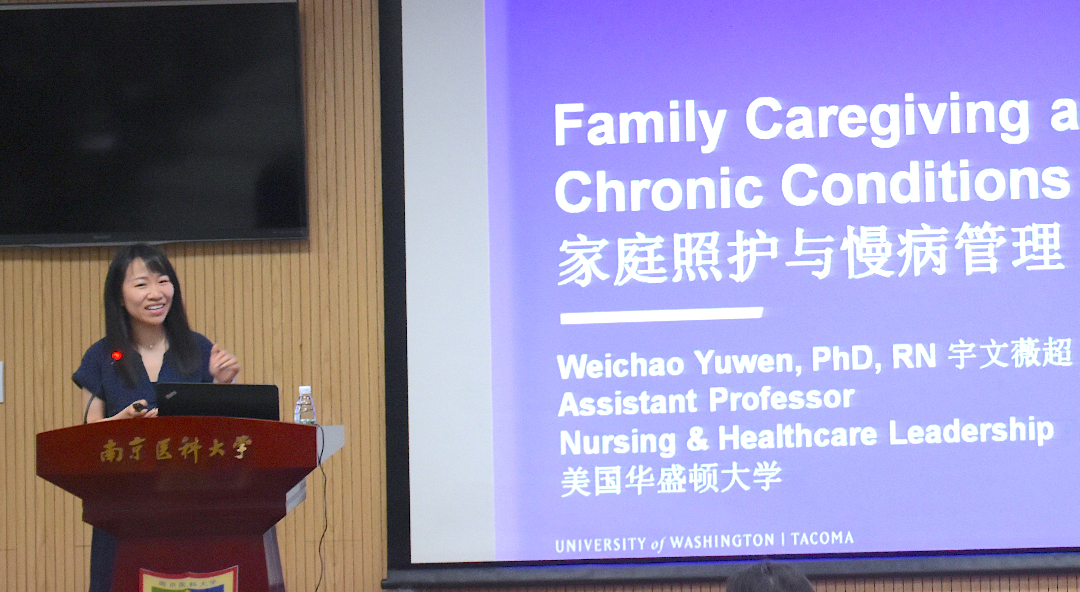 首先,来自华盛顿大学的助理教授、我校MK体育(中国)兼职副教授宇文薇超博士进行了专场讲座。她围绕家庭照顾与慢病管理进行了阐述。由家是什么引出以家庭为中心的护理照护。之后宇文教授就如何进行家庭护理的科学研究进行了分享交流,提出研究者与患者及家属一起进行研究设计的优势及必要性。讲座期间,与会青年教师就相关主题展开了热烈讨论,初步营造了自由交流的良好氛围。