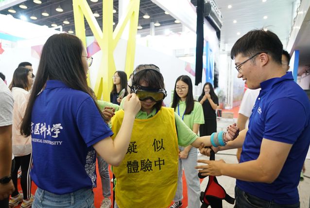 活动期间,团队成员通过宣传手册、宣传单页、自编教材、项目视频、文创折扇等多样化的形式全面展示了志愿服务模式和项目成果;并在现场开设了“疑似老年人”项目体验,以模拟装置让参与人员体验老年人的身体负重、背部弯曲、视力不清等感觉,感受老年人的各种不适及不易,激发大家对老年人的关爱和对养老问题的重视。