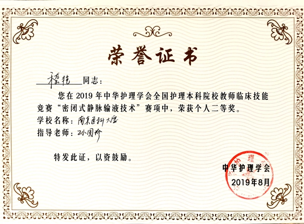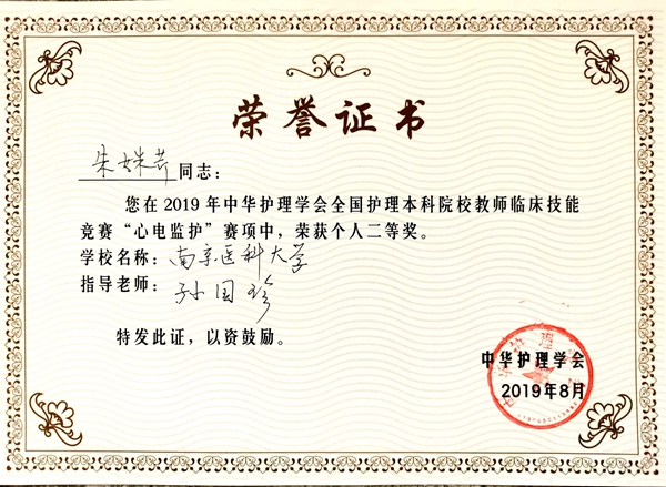 护理人文与管理学系嵇艳老师、临床护理学系朱姝芹老师和第一附属医院心脏内科王琴老师组成团队代表我校参赛。三位教师以扎实的临床专业技能和专业知识以及出色的临场表现,取得团队及各单项二等奖的优秀成绩。为备战本次比赛,MK体育(中国)和一附院护理部组成专家指导团队和后勤保障团队,由孙国珍教授担任总指导老师。本着“以赛促教、以赛促改、赛练结合”的目的,三位老师克服伤病疼痛,战高温强斗志,经过刻苦训练,赛出南医人优秀的专业素养和风采!