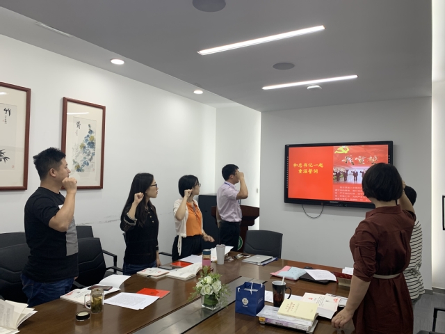 接着,支部围绕“四重四亮”主题开展集中学习。支部全体党员和习近平总书记一起重温入党誓词,任元鹏、唐慧婷、张俊、林玉华老师等逐一重读了当初的入党志愿,交流了自己的入党经历,重问入党初心。其后,支部围绕“初心是什么、使命干什么、奋斗比什么”展开集体讨论发言。林玉华老师认为,奋斗就是守好自己的责任渠、种好自己的责任田,把本职工作做踏实、做认真,做好团结与协作、创新与发展;丁晓彤老师围绕“使命干什么”谈到,作为一名医学院校的老师,要坚持为人民服务是医学生思想政治教育的核心内涵,立足立德树人根本任务,体现对生命的尊重意识、对科学的追求精神、对医学的奉献精神、对病人的关怀精神,将人文精神与科学精神有机融合,塑造医学生医者仁心的素养和德能兼修的能力;雷阳老师觉得作为普通党员应该将初心和使命落实到本职工作中,奋斗一是要比积极主动的工作态度,以更加热忱的心态开展好各项本职工作,不为自己的利益得失而斤斤计较,二是要比立足岗位、无私奉献的精神。说一万道一千不如撸起袖子加油干。杨如美、朱姝芹、任元鹏、蒋荣、李现文等同志也都结合自己的理解和本职工作谈了对初心、使命和奋斗的看法,现场交流热烈。支部还就做好“不忘初心、牢记使命”主题教育应知应会内容的学习进行了部署。