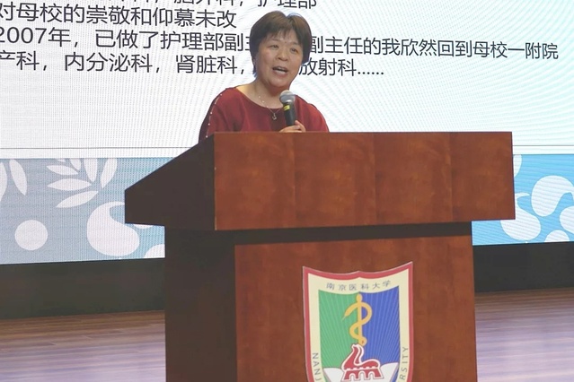 随后,第五届南京地区“十佳护士”、南京市五一劳动奖章获得者、南京医科大学第一附属医院介入放射科专科护士长、主任护师王雪梅老师与同学们共话“初心”。课程伊始,王雪梅老师回忆了从1987年起自己就读于南京医学院高护系(今mk体育在线官网)的经历。她提到,大学的五年学习生涯教会了她许多,有稳固的专业思想,有评判性思维,但最重要的一点,是教会了她什么是温暖,如何让别人感受到温暖。而这一切,也促使她的初心开始启航。来到医院,王老师更深层次地理解了自己的使命:是应当用卓越的技能、扎实的理论基础、友好耐心的态度去对待病人,是学会敬佑生命、救死扶伤、无私奉献,是真正做到大爱无疆。王老师始终坚信:拯救病人生命,帮助病人康复就是实现自我价值的体现。几十年风雨,几十年逐梦,王老师在这样的时间迁移中不曾改变自己的初心。她用自己的亲身经历让年轻的护理学子们明白:医者,扶的是伤,救的是心;打的是针,给的是情。不忘初心,方能自我实现。