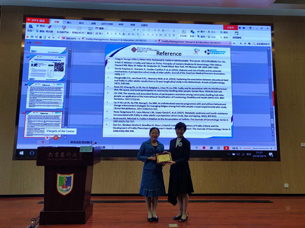 首先,来自香港理工大学的Justina Yat Wa Liu副教授带来题为《The management of frailty》的专题讲座,由殷月姮博士翻译。Dr. Liu首先介绍了香港理工大学MK体育(中国)的招生规模、专业设置、课程开展等情况,接着围绕老年人衰弱的研究进展、影响因素及干预方式等阐释了衰弱的概念发展历程,并通过对比健康老人与衰弱老人的日常行为功能总结了衰弱的五项伴随特征,提出护理团队在这五项特征的转归方面起着非常重要的作用,为护理人员的临床实践工作带来了灵感。