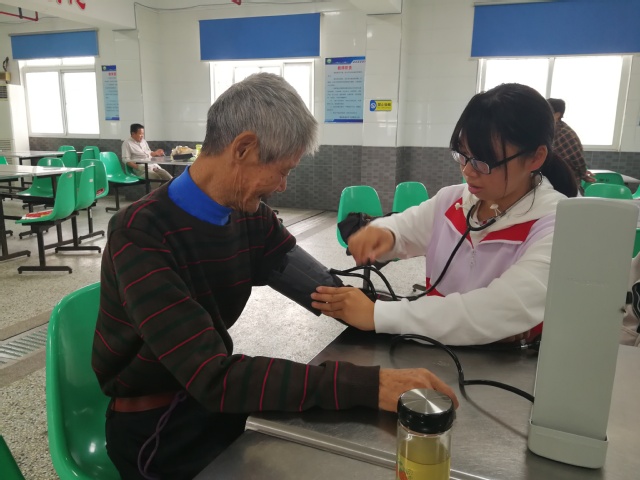 志愿者们或是穿梭于老人之中为其耐心地修剪指甲,或是细心地为其清理耳道,或是耐心地为老人们测量血压。一声声呢喃,一句句叮嘱,凝聚的是志愿者们的关心与爱护。