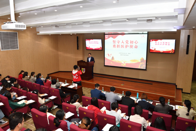 林书记从“初心和使命”入题,详细阐述了入党的初心和使命、教育的初心和使命、护理人的初心和使命。他从“重问入党初心”讲起,回顾了在“新民主主义革命时期”“新中国成立后”“改革开放后”“新时代”等不同历史阶段中国共产党人的初心和使命,并结合个人入党经历与身边先进典型,强调了反复叩问入党初心的重要性。