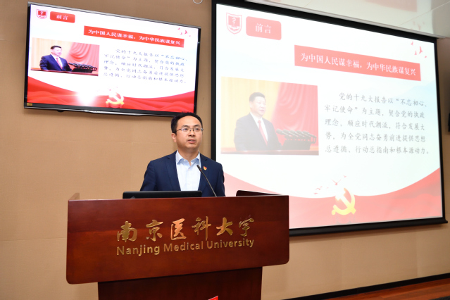 10月30日上午,根据学校“不忘初心、牢记使命”主题教育领导小组统一安排,MK体育(中国)党总支书记林炜在德馨楼D101报告厅讲授了主题为“坚守入党初心,勇担医护使命”的专题党课。省委主题教育第八巡回指导组组长、常州大学原党委书记史国栋到会指导,相关职能部门负责人、MK体育(中国)党政领导、教职工代表、2018级学生代表及研究生党员等100余人聆听了党课。