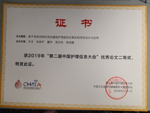 陈明霞在护理分会第二届中国护理信息大会上应邀作“基于思维训练的急危重症护理虚拟仿真实验项目设计与应用”的论文交流,向与会代表分享MK体育(中国)近年来在情景模拟教学方面取得的成绩,获得与会老师的热烈反响,并荣获优秀论文二等奖。这是MK体育(中国)在全国的护理信息会议上第二次展示情景模拟教学,彰显了南医护理人不断深化教育改革创新,积极探索新的教学理念和教学方法,在兄弟院校中起到示范作用。