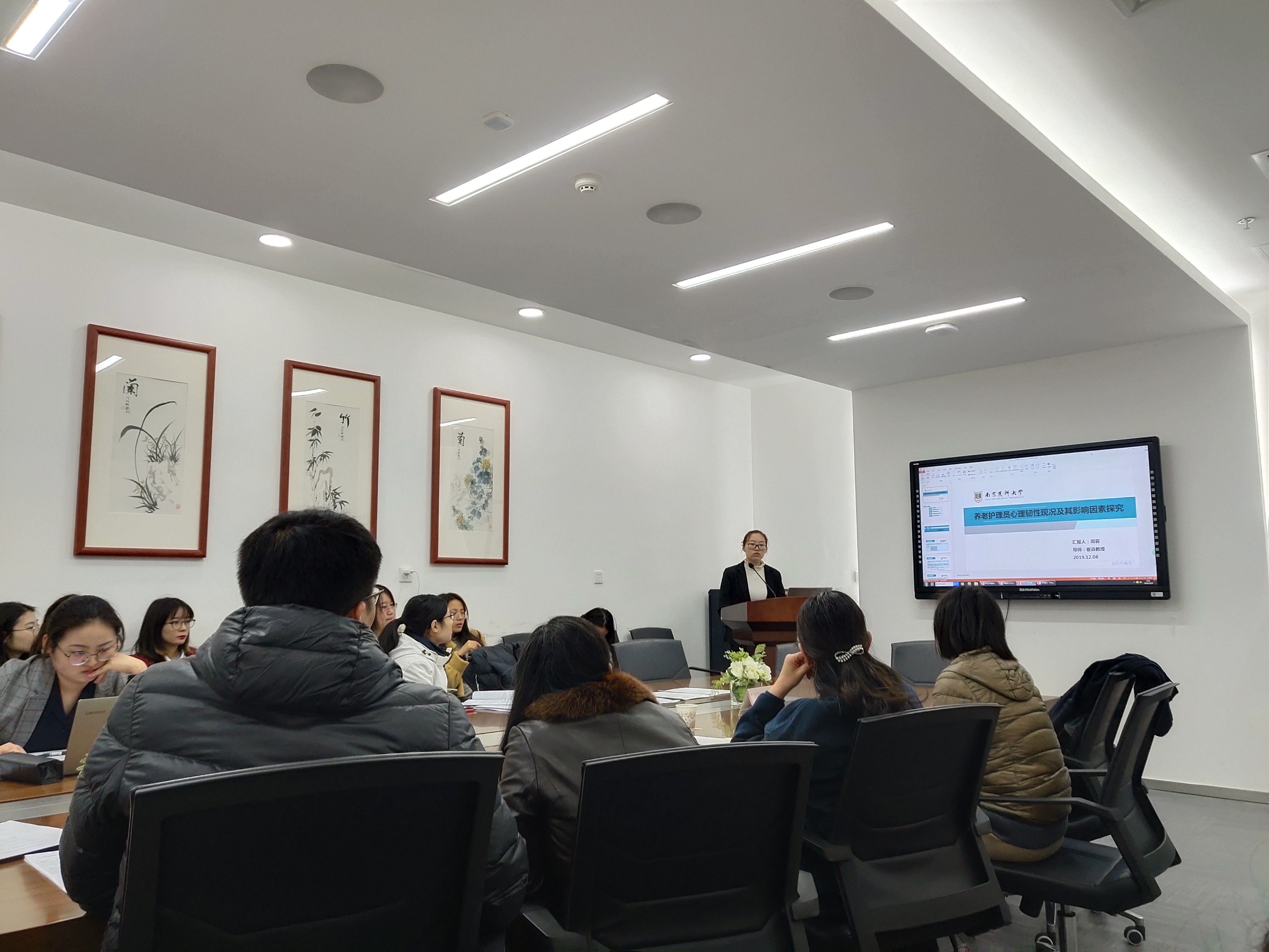 会上,同学们围绕自身研究方向,从课题选题的研究背景和立项依据、研究目的和内容、研究方法和框架、研究的创新点和可行性、预期研究成果等方面一一进行了阐述,同时也对目前研究进展和后续计划安排做了汇报。专家老师们围绕选题依据、研究思路、研究方法、可行性等逐一给出了细致地点评,并对存在的问题和不足提出了宝贵的指导意见和修改建议。研究生们都非常虚心地接受了专家们所提出的意见,并做了详细的记录,现场学术氛围浓郁。