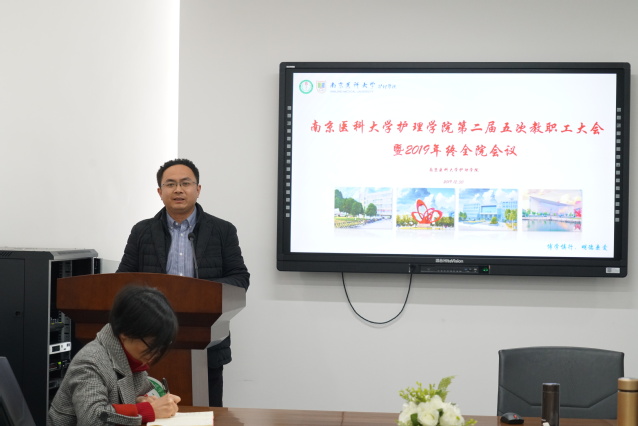 2019年12月30日中午,护理学院于学海楼C504召开第二届五次教职工大会暨2019年终全院大会。全体教职工参加。会议由林炜书记主持。