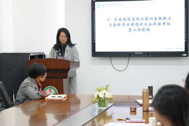 院第二届教职工大会秘书长管园园副书记作第二届四次教职工大会提案办理情况及今年提案征集工作说明,本年度征集有关校园卡关联银行卡事宜和校内各网络系统统一管理两项提案,后续将就两项提案开展调研,并给予办理。