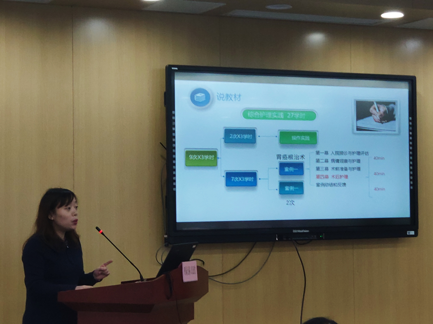 11日下午,四个驻点班的老师依次进行说课,针对上消化道出血患者进行胃癌根治术的案例,详细展示了患者从入院接待及评估、病情观察和护理、术前准备与护理及术后护理的课程设计,赢得了督导林晖老师和韩群颖老师的一致好评。