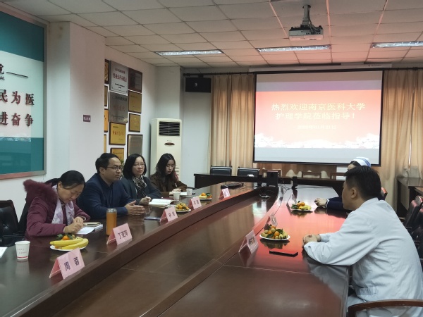 2020年1月21日上午,学院林炜书记、许勤副院长、丁亚萍副院长等一行5人赴南京医科大学社区卫生实践教学基地——新街口社区卫生服务中心(玄武医院)进行走访调研。玄武区卫健委副局长、新街口社区卫生服务中心院长王河、副院长杨轶青、护理部主任虞建花以及全体护理骨干参加了调研。