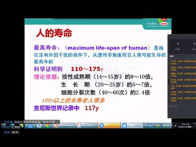 《老年护理学》的第一课由老年医学科护士长沈志梅主讲,从大年初四至今,护士长一直坚守在工作岗位,不曾休息。为了给学生们呈现最佳的教学效果,护士长早早地与大家建立了钉钉群,并不断摸索,多次尝试,最终直播教学圆满完成。尽管过程很耗时耗力,护士长说:“同学们的认真听讲就是对老师辛苦付出最好的支持与回报。”