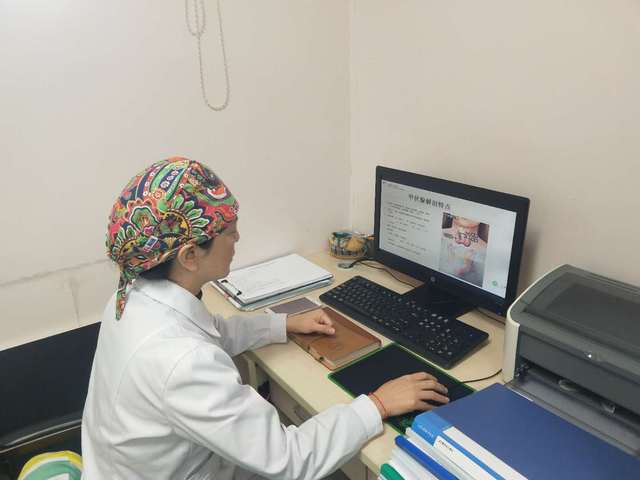在做好临床工作的同时,为了不影响教学工作,她都是利用晚上的时间备课,认真准备PPT课件和教案,设计教学方法,学习视频录制等线上教学方法,在备课期间,常常工作到深夜。开课当天,她还起了个大早,先到科室查看了科内的常规工作情况后,再到护士长办公室给学生进行线上授课。