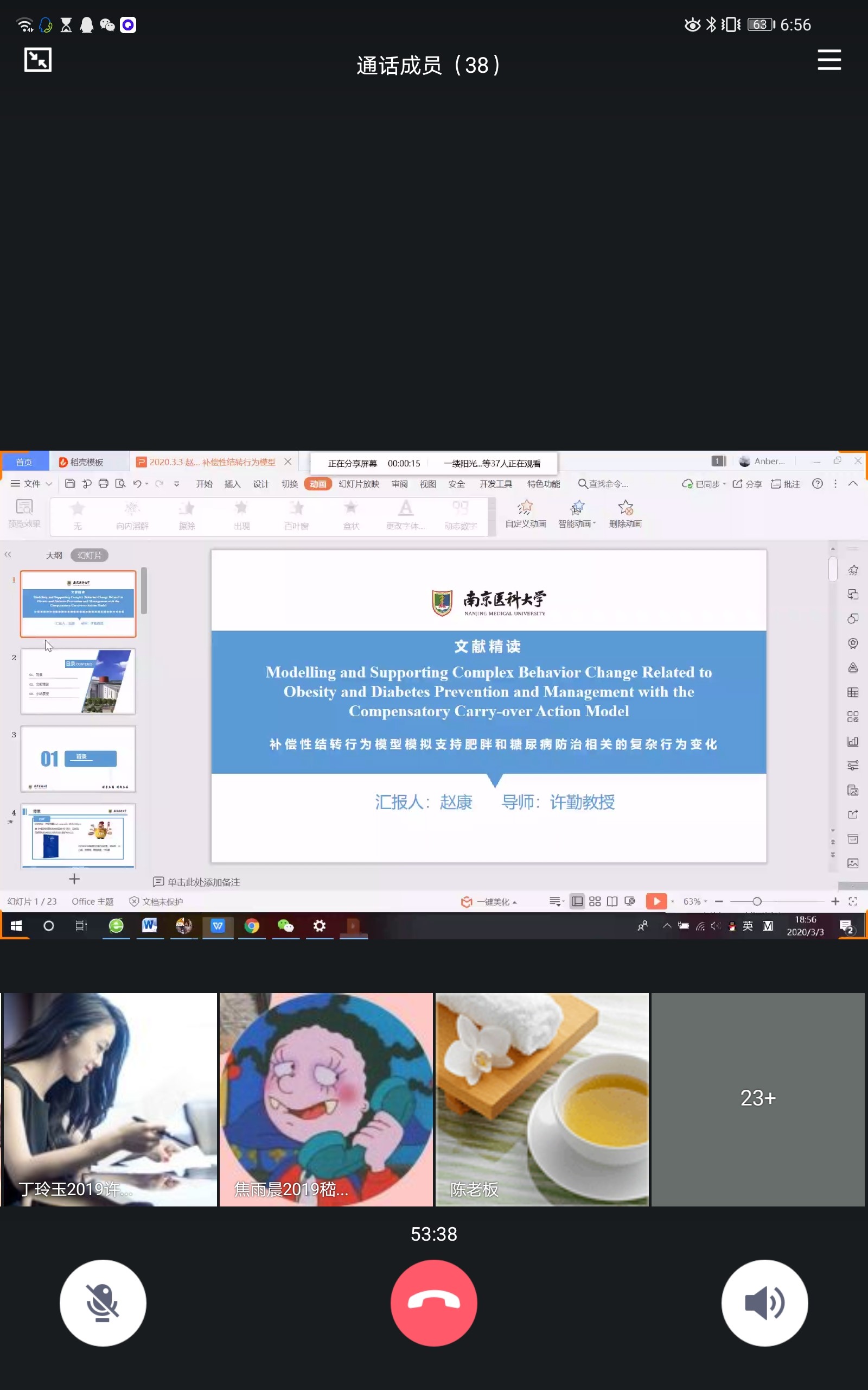 以及以“补偿性结转行为模型模拟支持肥胖和运动糖尿病防治相关的复杂行为变化”来做文献精读主题的2019级研究生赵康同学。