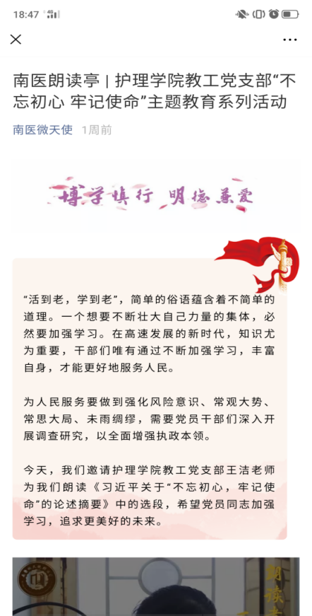 今天,我们邀请MK体育(中国)教工党支部王洁老师为我们朗读《习近平关于‘不忘初心、牢记使命’的论述概要》中的选段,希望我们加强学习,以追求更美好的未来。