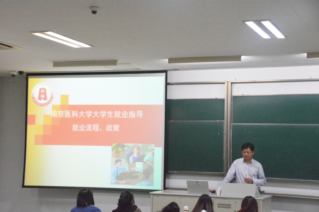 课程伊始,洪老师围绕8个关键词——毕业生就业流程、求职推荐书遗失补领流程、就业协议签订流程、就业协议书遗失补领流程、就业协议解除重申流程、报到证与户口迁移证、档案问题详细介绍了毕业生就业流程和南京医科大学毕业生就业工作日程安排。洪老师以流程图的形式清晰直观的讲演给同学们,使同学们对毕业前如何准备就业材料和毕业后如何求职有了初步的了解。