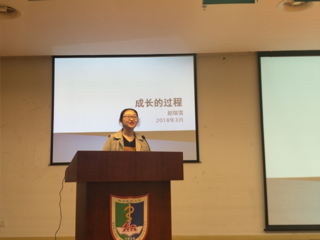 课堂伊始,主持人刘沈馨雨以简要的开场白请出了课堂的第一位经验分享人孙海峰。孙海峰是药学院14届本科生,现于本校的生殖医学实验室做科研。他首先就自己毕业时对未来职业的最初规划,引出了接下来精彩的内容。他说:“同学们作为本科生,这一阶段应注重培养社交能力、口才和处理事情的能力,根据自己的兴趣选择自己想要学习的知识,比如听讲座等。除此之外,性格对于个人能力的培养很重要,学生们应当懂得肩负起属于自己的责任。”