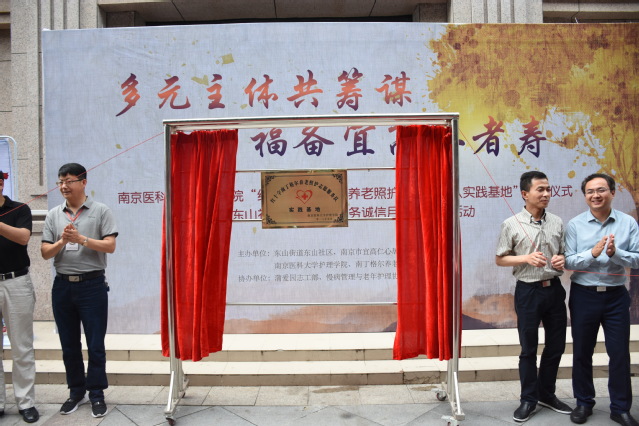 5月17日上午,mk体育在线官网“红十字南丁格尔养老护照志愿服务队实验基地”挂牌仪式暨东山社区居家养老服务诚信月主题广场活动于东山社区开展。江苏省红十字会卫生救护部副调研员邵亮、护部主任科员成道祥,南京市红十字会赈济救护部副部长王伟、南京市江宁区红十字会秘书长经祥、南京市江宁区红十字会业务科副科长张琪、东山社区居家养老中心主任徐梦倩、南京医科大学党总支书记林炜、党总支副书记、副院长管园园、副院长丁亚萍以及MK体育(中国)教师代表、南丁格尔志愿服务团队代表参加了本次活动。