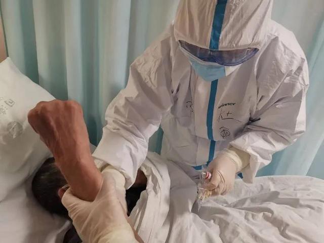 “大家都知道,穿上防护服、戴上护目镜后,所有的行动都会受到限制,尤其是静脉采血、静脉输液这样的精细操作。第一天上班,我就接到任务,帮一位奶奶挂水。老年人的血管本就不是很好,我牢牢记着胆大心细,凭我在心血管科打过那么多细静脉的心脏病人的工作经验,我真的一针见血地帮她打上了针。老奶奶很开心,连连表扬和感谢,说我打的针一点也不疼!顿时开心得就要起飞,满满的成就感!”