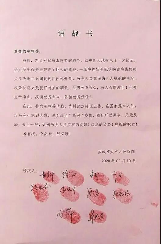 “在除夕值夜班那天,我看到湖北疫情严重的新闻,我和另外九个同事一起签下请战书,希望能为前线做点什么。”