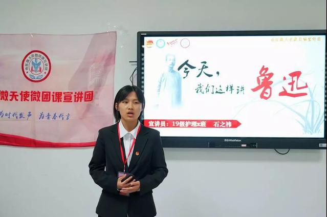 石之祎用简洁有力的话语谈着我们今天该如何讲鲁迅,所谓字字珠玑,反讽的字句若刀尖般赤裸裸地直击听众内心。步履匆匆的现代生活中,青年们更应拾起鲁迅从文的初心,用尖锐的目光着眼社会,和平年代亦需要青年的爆发!