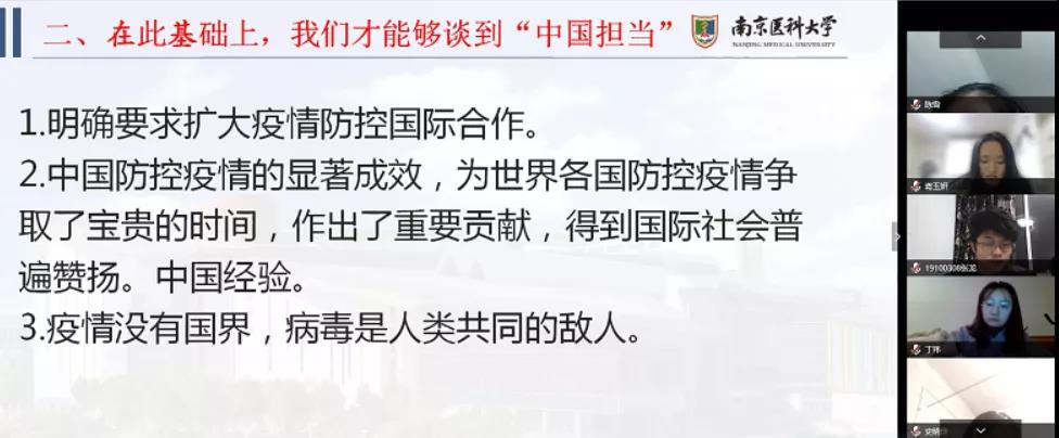 “万物并育而不相害,道并行而不相悖”,张老师告诉微团课所有成员,抗击疫情充分体现了人类命运共同体这一理念。