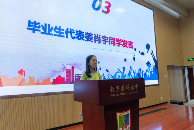我院毕业生代表15级护理6班姜肖宇同学表达了她对学校、老师及同学不舍与感谢。满怀感恩之心、坚定前行的她们再话青春韶华,追忆来时的路。南医四年生活的点点滴滴深深印刻在她们的脑海,她们也将带着这份至精至善的南医精神勇往直前,护理事业贡献力量
