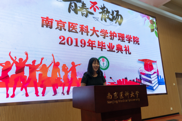 我院副院长许勤老师肯定了2019届全体毕业生在学习、活动、竞赛等方面取得的优异成绩并衷心祝贺2019届全体毕业生圆满完成学业。许院长深情嘱托我院2019届全体毕业生要志存高远,不忘初心,砥砺前行,为成为我国医药卫生事业发展的优秀人才而努力,争做有温度、有情怀、有梦想、有担当的南医护理人。