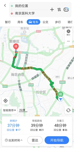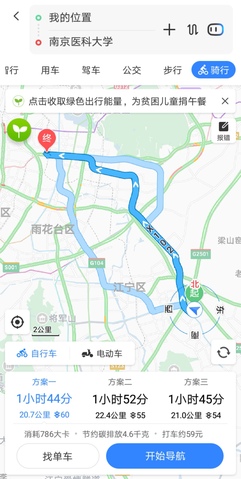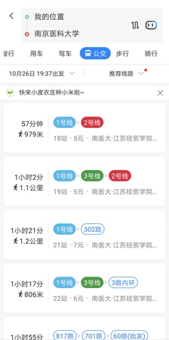 南京医科大学江宁校区到五台校区的走法有很多种,百度地图告诉我们,可以选择的方式有四种: