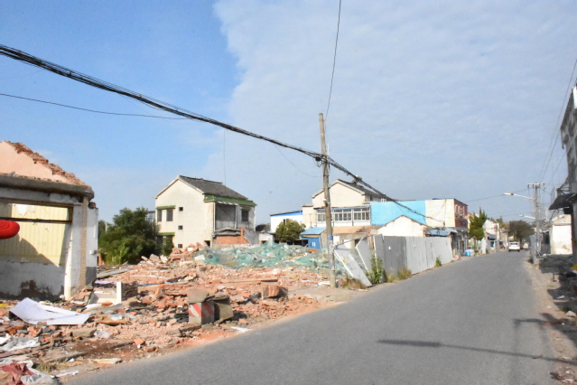 徒步从江宁到五台的途中,历经了一个经济并不那么发达的小村,遍地的残垣断瓦,玻璃被打碎,红色的瓦砖被记号笔重重的写下一个“拆”字,风很大,偶尔伴随着黄沙吹进我们的眼睛,地是泥泞不平的,以及时不时传来的厚重的马达声,这里的人很少且大部分都已经上了年纪,在快要出村子的时候,我看见一群老人在卖一些生活用品,他们坐在小板凳上,生活品铺在麻袋上,麻袋铺在地上。这里卖的东西很多都是些款式已经很老,甚至于我在老家才能看到的,比如说那面镜子,艳丽的玫红色底座上嵌着可以翻动的镜子,镜子已被擦得很亮了,无奈风大使得镜面的边缘仍沾有着些许灰尘。