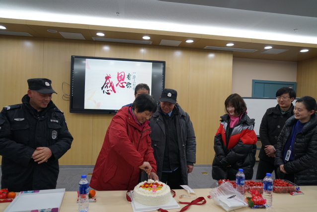 本次活动共分为六个部分。首先,由刘雨瞳同学作为学生代表上台发言,谈了谈对叔叔阿姨们的印象与感悟,表达对学校基层工作人员的感激与敬畏之情。接着,保卫处叔叔与宿管阿姨分别上台向同学们聊聊自己的工作内容以及对学校多年发展变化的体会,他们从学校老师同学们的信任感受到了这份工作的意义。接着,由辅导员张婷老师致辞,张老师讲到了自己在物管处存包裹的经历,并表示“有物管处的工作人员在,不担心会有物件遗失”,可见她对基层工作人员的信任。主持人从同学们写的感谢信中随机抽取了两封,并请这两名同学念出来。两名同学声情并茂地读着感谢信,从字里行间中无不体现出对身边关心自己的叔叔阿姨们的感谢,写出了众多同学们的心声。最后,6班全体同学上台演唱《夜空中最亮的星》,使气氛达到高潮,大家一起分享蛋糕并合影留念,感恩会圆满结束。