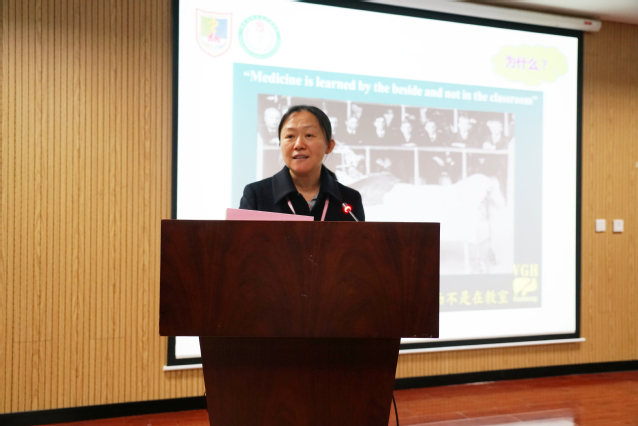 大会伊始,丁院长向大家讲解了实习过程中的教学要求。她从四大方面展开,即理解实习的重要性、明确实习的规划与学习目标、实习成长中的注意事项以及关于毕业考试。丁院长从建构主义学习理论入手诠释实习学习,她表示知识不是通过教师传授得到,而是学习者在一定情境即社会文化背景下,借助其他人(包括教师和学习伙伴)的帮助,通过协作、会话,利用必要学习资源,经过意义建构而获得。学习是一个自主建构、相互作用和不断生长的过程。