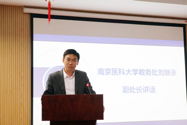 大会的最后,教务处刘继永副处长结合个人经历浅谈实习。刘处长结合亲身体验谈到护士工作的艰辛,同时,他又强调同学们在过程中也会收获很多。他希望大家从思想上重视实习,坚定职业信念,做好相应心理准备,遵守纪律,保护自己。最后他希望大家顺利完成实习阶段。