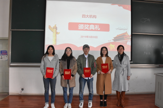 活动渐进高潮,管老师为四位做出杰出贡献的原主席颁发学院制作的荣誉证书,并对获奖同学进行了赞扬和鼓励。颁奖之后,热闹而有序、短暂却精彩的典礼在同学们热烈的掌声中落下了帷幕。