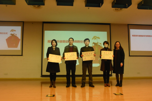 同时,“南医微天使朗读亭”负责人朱琳同学向大家发出要朗读邀约,MK体育(中国)许勤副院长为蔡心轶、张爱林、张晓娜、汪璐四位老师颁发了“南医微天使朗读亭”常驻导师聘书,这也是朗读亭首批被聘任的常驻导师。
