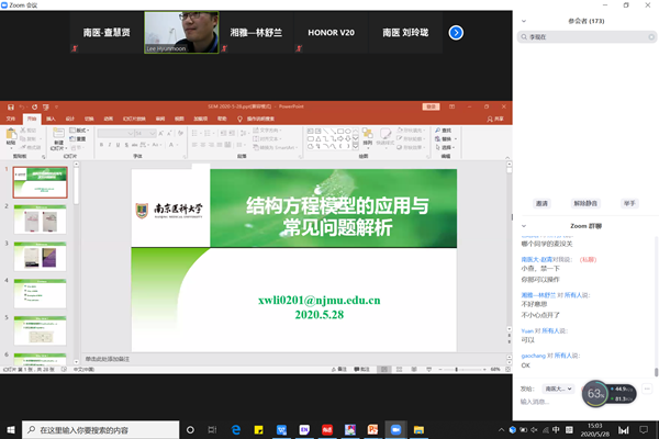 “微天使”护理研究生联盟于2020年5月28日下午13时整顺利召开线上专家讲座,主持人为mk体育在线官网研究生查慧贤(“微天使”护理研究生联盟秘书长)。此次学术讲座邀请到中南大学湘雅MK体育(中国)冯辉教授以及mk体育在线官网李现文副教授分别围绕《养老护理员的培训》及《结构方程模型的应用及常见问题解析》两个主题展开。五校MK体育(中国)研究生共计200人参加了本次讲座,广大研究生们就自身研究方向、研究困惑与两位教授在线上展开了充分的讨论与深层次的交谈,大家纷纷表示受益匪浅。